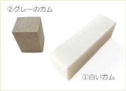 基本的には、白いガムだけで充分に効果を発揮しますが、それでも落としきれない古いクリームや油などには、グレーのガムを使用します。