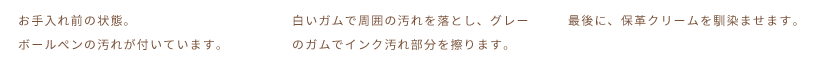 本革製品は本来、強度としなやかさを持ち合わせる末長くご愛用いただけるものですが、性質上、水分や摩擦ダメージには弱く、色落ちやシミ、汚れの種類によっては綺麗に元に戻りにくいのが実情です。