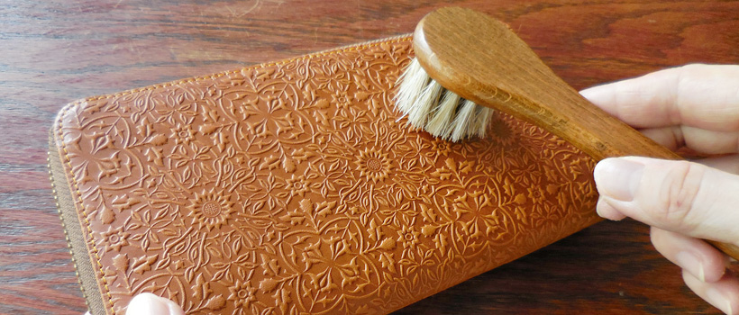 ご使用の際は、革製品の表面や縫い目、角の部分等のホコリを、軽く払うようにブラッシングしてください。